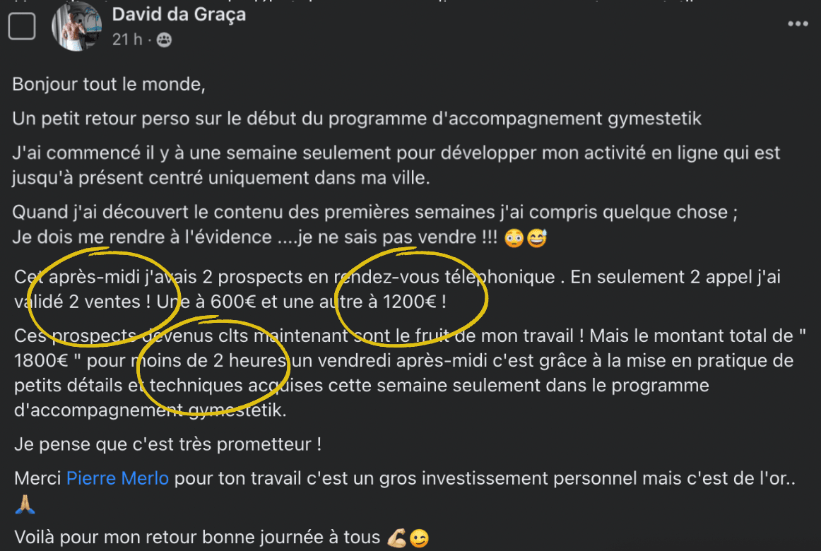 Les résultats peuvent varier d'une personne à l'autre. Cet atelier ne représente en aucun cas une promesse de gain. Ces résultats sont le fruit de travail, connaissance et rigueur, présentés à titre d'exemple